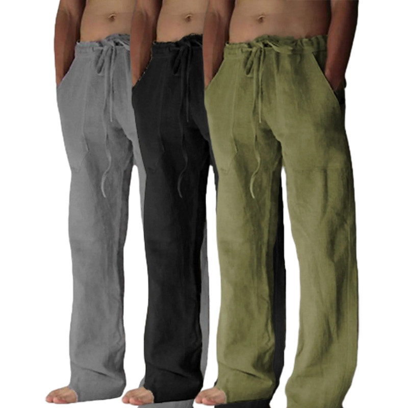 Men's Linen Pants Trousers Summer Pants Baggy Pants Beach Pants Drawstring Pocket Multi-pack Plain Comfort Lightweight Full Length Yoga Casual Daily Vacation Classic Style Loose Fit KhakiWhiteGray