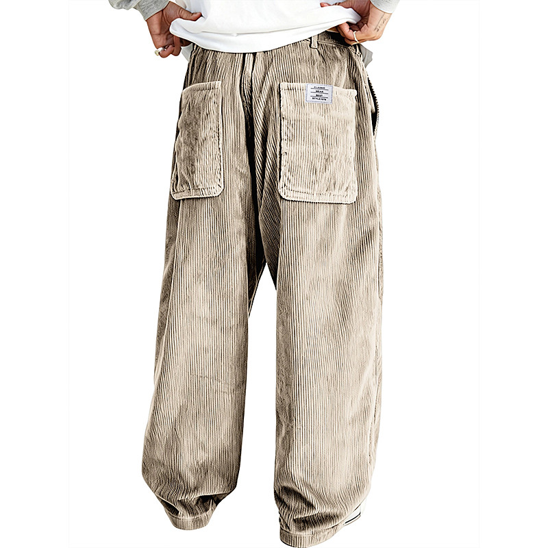 Men's Trousers Corduroy Pants Baggy Pants Casual Pants Pocket Elastic Waist Straight Leg Solid Color Comfort Full Length Daily Outdoor Streetwear Vacation Fashion Black White Micro-elastic