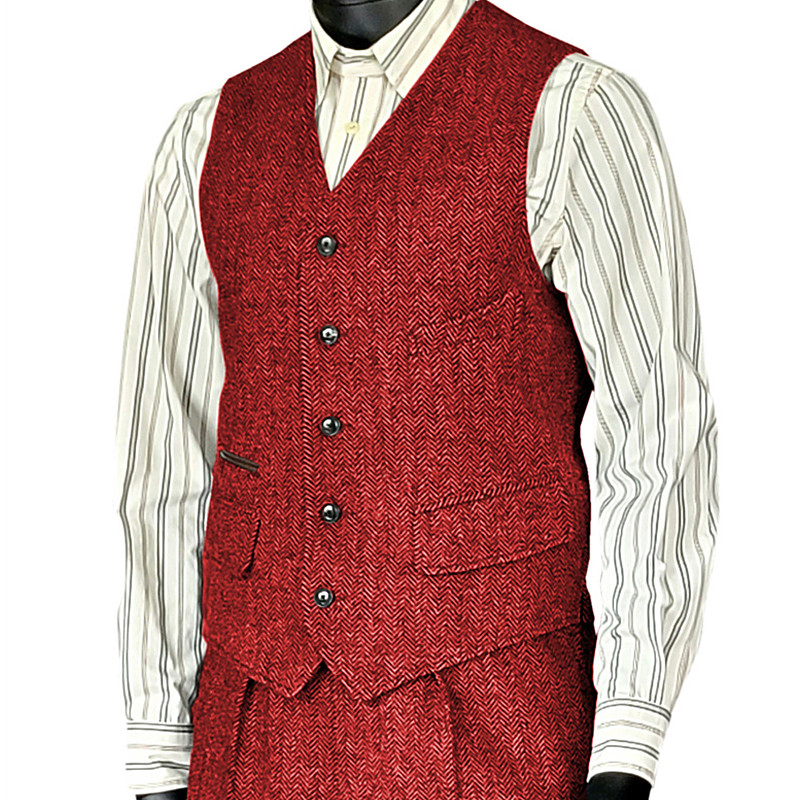 Men's Vest Waistcoat Gilet Vacation Party Business Fashion Casual Spring Fall Pocket Buttons Polyester Comfortable Plain Single Breasted One-button V Neck Regular Fit Silver Black Wine Red Vest