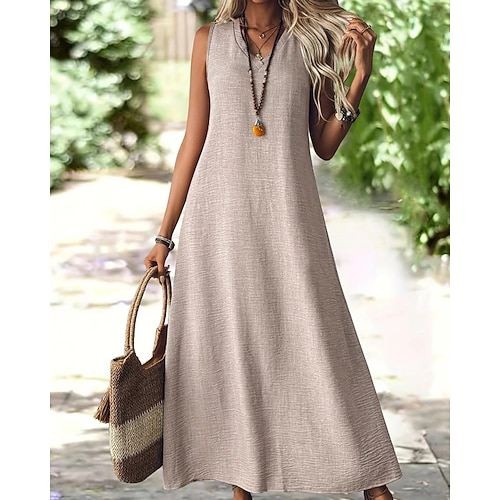 Per donna Abito Midi Vestito Casual Classico Moderno All'aperto Vacanza Quotidiano Vestibilità regolare Semplice Senza Maniche Scollo a V Nero Giallo Vino Viola Estate