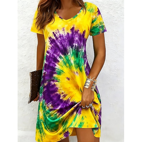 Per donna Mini Abito Vestito Casual Vestito T-Shirt Moda Moderno Quotidiano All'aperto Vacanza Vestibilità regolare Grafico Tinta a nodi Manica Corta Scollo a V Giallo Estate Primavera