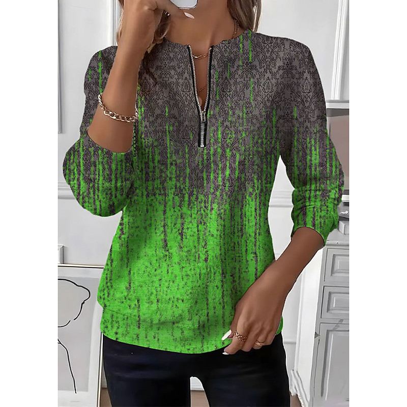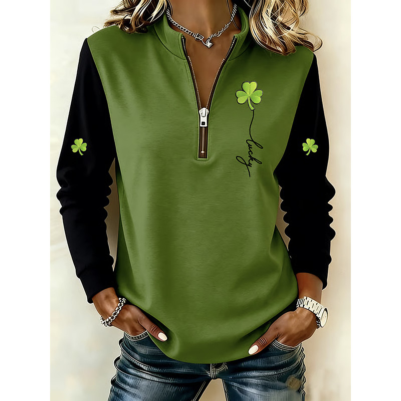 Women's Pullover Sweatshirt Zip Up Sweatshirts Graphic Shamrock Fashion Casual Long Sleeve Crew Neck Half Zip Regular Tops Street Dailywear Zipper Print Green Fall Winter