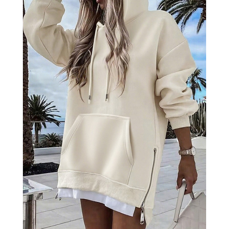 Women's Pullover Hoodie Sweatshirt Plain Casual Long Sleeve Hooded Long Tops Street Holiday Going out Zipper Pocket Black White Brown Green Fall Winter
