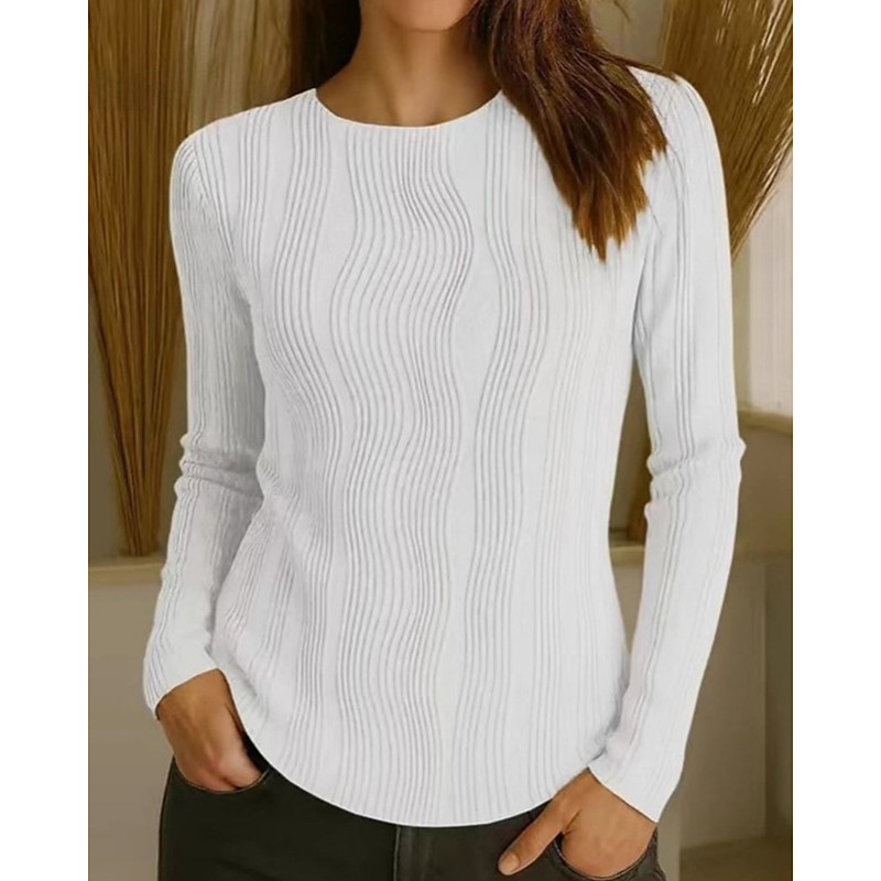 Women's Pullover Elegant Vintage Daily Solid Color Ribbed Crew Neck Knitted Long Sleeve Regular Tops Knit Formal Outdoor Home Black White Spring Fall