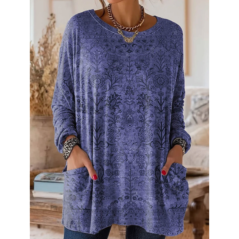 Women's T Shirt Floral Graphic Plants Vintage Fashion Stylish Long Sleeve Crew Neck Regular Tops Daily Going out Weekend Pocket Print Blue Red Purple Green Khaki Spring Fall Winter