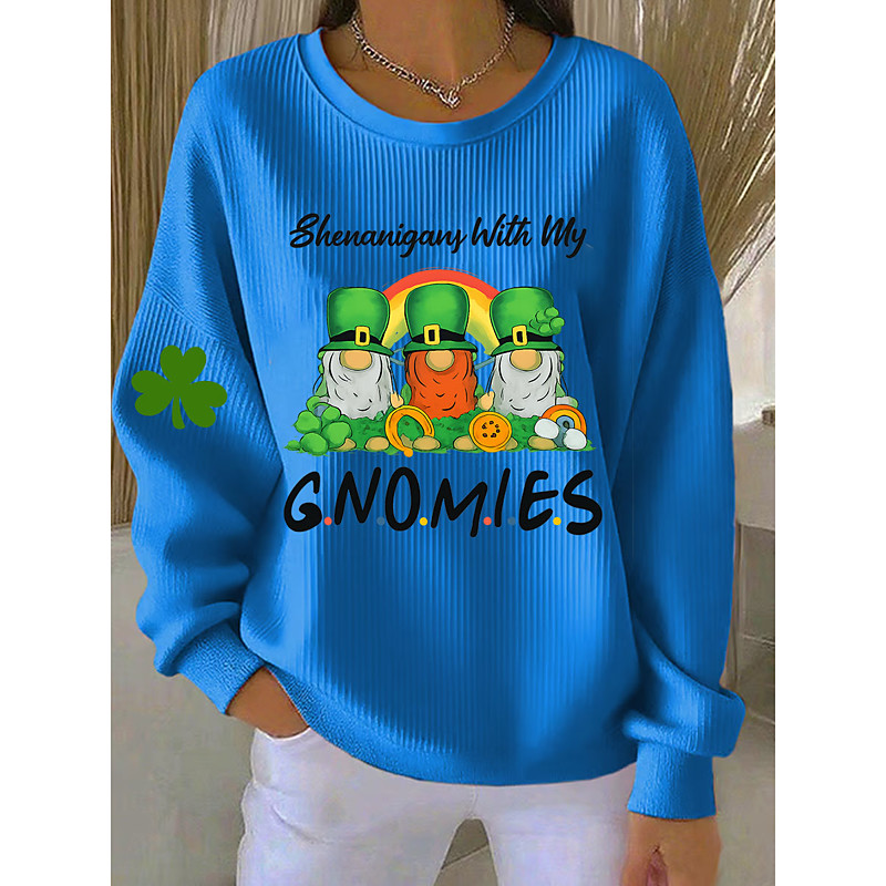 St. Patrick Women's Pullover Graphic Letter Warm Classic Casual Long Sleeve Crew Neck Round Neck Regular Tops Casual Home Street Print Blue Black White Spring Fall Winter