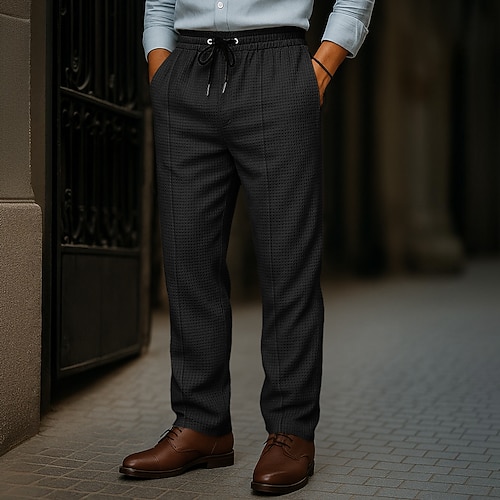 Herren Waffel Hose Baggy-Hosen Knöpfe Einfach tragbar Volle Länge Outdoor Täglich Campen und Wandern Urlaub Mode Schwarz Weiß