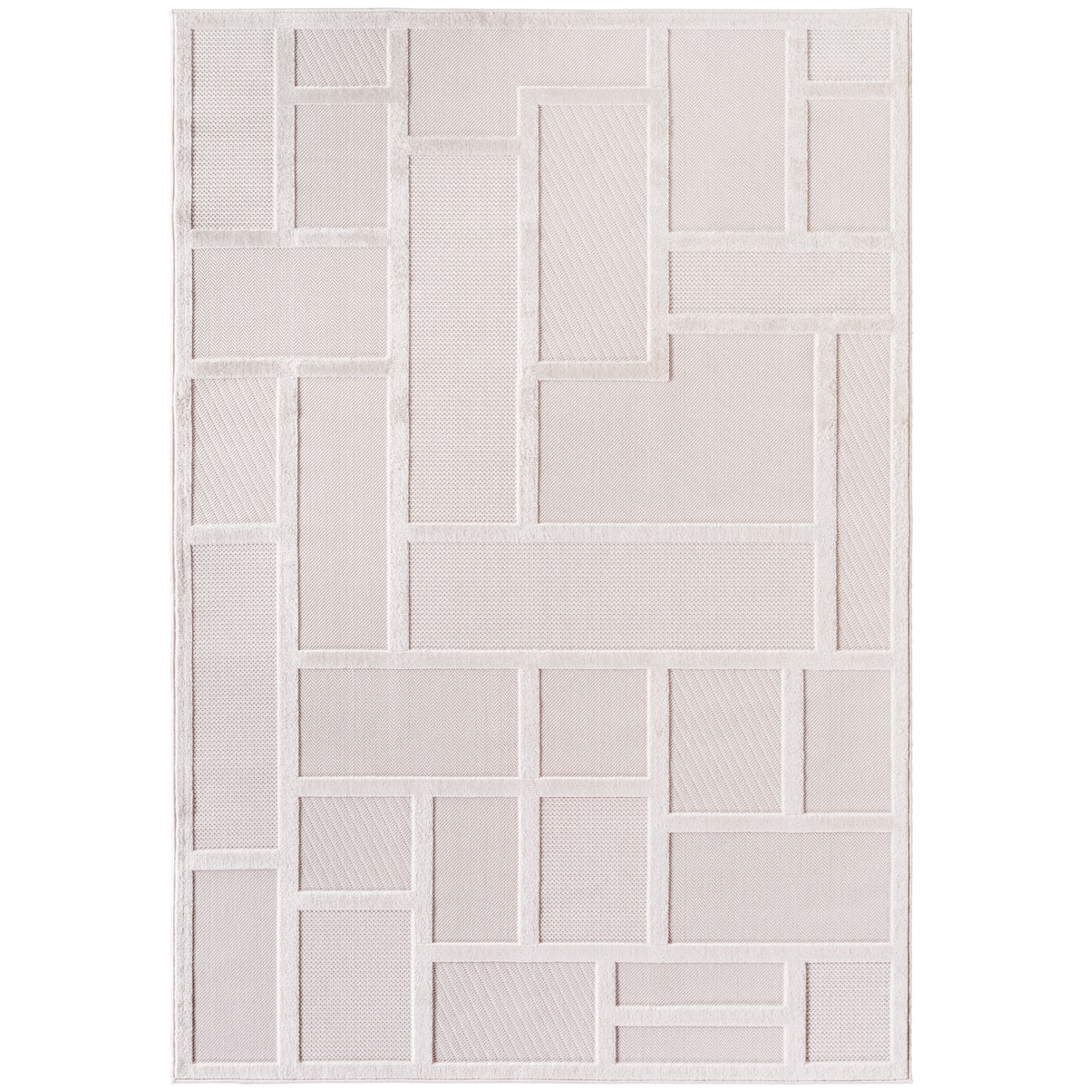 Carpetsale24 In- & Outdoor Teppich 120x170 cm – Wetterfest & Pflegeleicht – Creme Teppich mit Kariert-Boho Design für Küche, Wohnzimmer