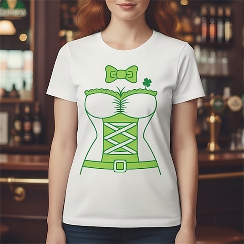 San Patrizio 2026 Irlandese fortunato Carnevale T-shirt Cosplay Adulti Per donna Giorno di San Patrizio Casuale Feste Costume di Carnevale facile Vestirsi