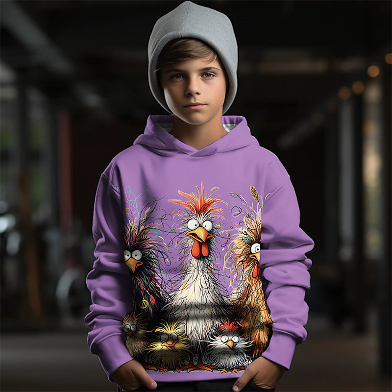 Boys 3D Graphic Animal Chick Hoodie Long Sleeve Spring Fall Fashion Streetwear Kids 4-12 Years Hooded Outdoor Casual Daily Regular Fit