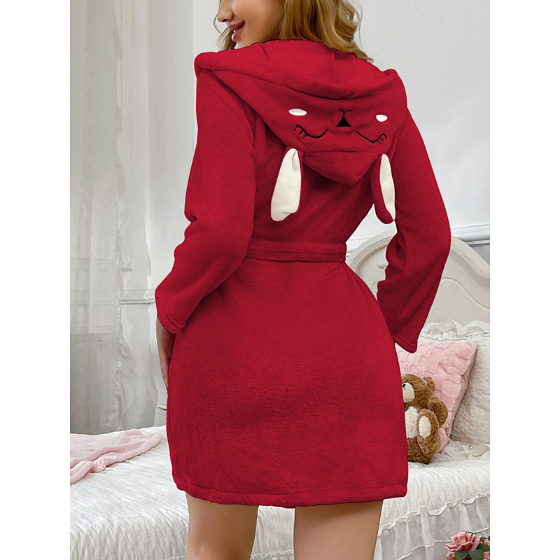 Women's Robe Casual Comfort Rabbit Embroidered Home Daily Long Sleeve Hoodie Pink Red Spring Fall Winter Loose Fit