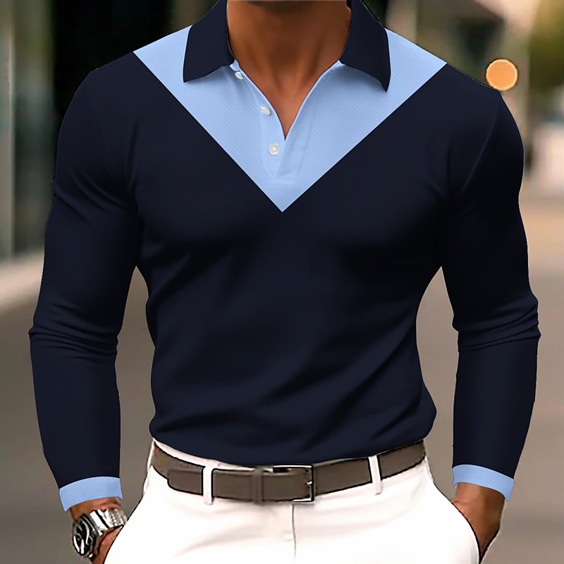 Men's Color Block Polo Long Sleeve Polo Shirts Lapel Casual Outdoor Athleisure Daily Wear Buttons Spring Fall Winter Blue Black Navy Blue