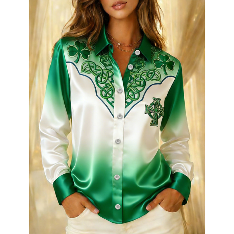 St. Patrick's Day Women's Shirt Graphic Shamrock Vintage Stylish Modern Long Sleeve Shirt Collar Regular Tops Daily Holiday Green Summer Spring