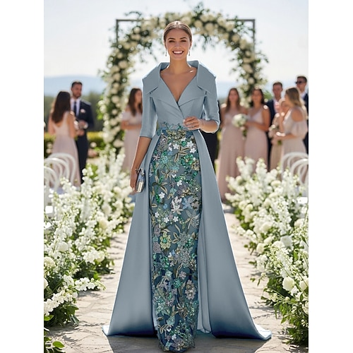 Linea ad A Tubino Colonna Lunghezza al pavimento Abito da invitata a nozze Abito Formale Abito da sera Abito da cerimonia per signora Manica 3/4 Scollo a V Elegante Formale Ospite di nozze