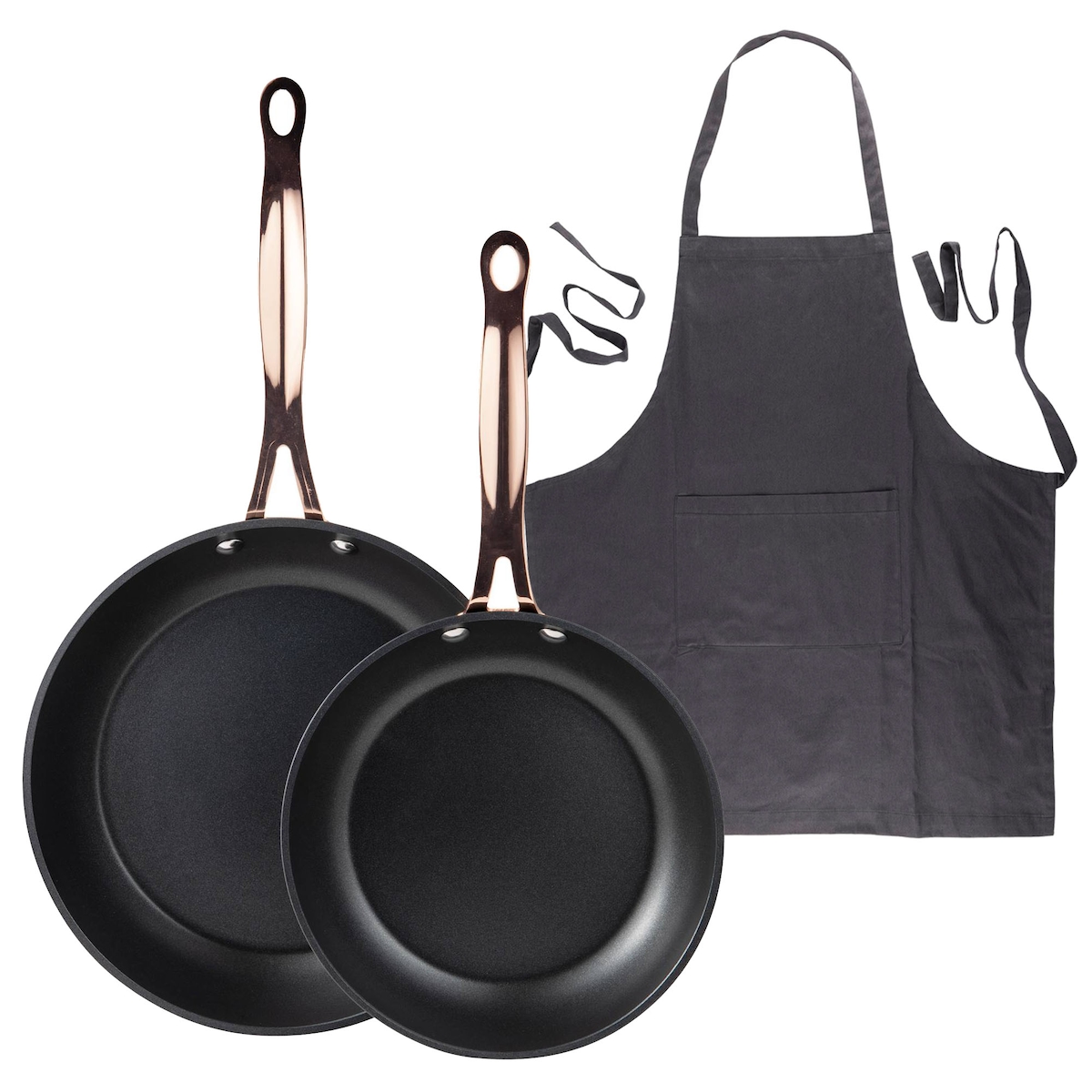 BERGNER - Set aus 2 Pfannen Ø20/24 cm aus geschmiedetem Aluminium Schwarz Matt mit Kochschürze Dunkelgrau 100% Baumwolle 75x80 cm