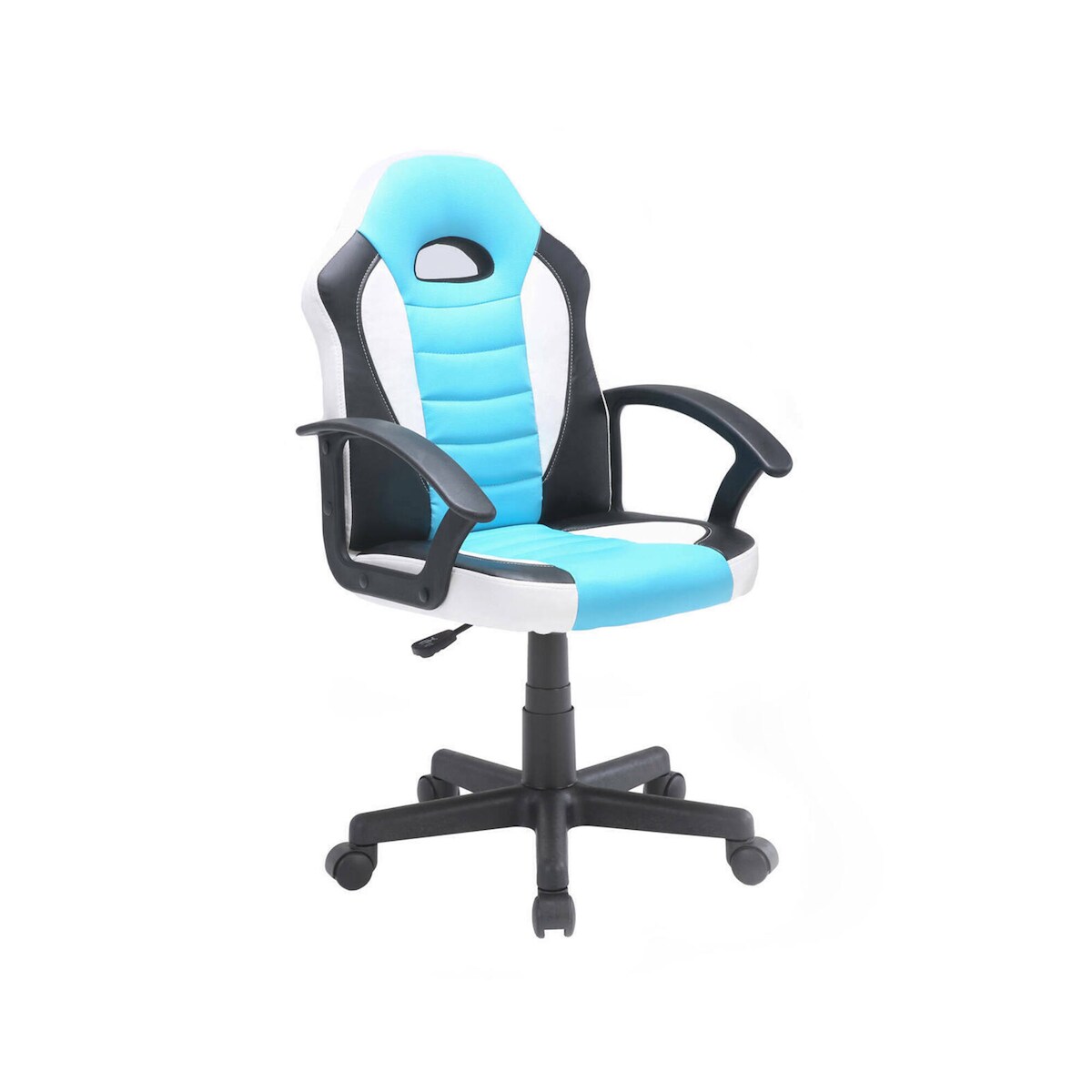 Dmora Gaming-Stühl Dfaraon, Kinder-Gaming-Sessel, Schreibtischstuhl, 56x55h89/100 cm, Himmelblau und Weiß