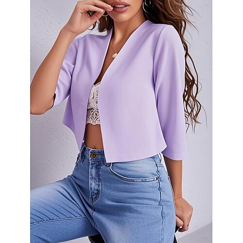 Damen Freizeitjacke Bequem Atmungsaktiv Öffnung vorne Lässig Einfach Urlaub Straße Lässig Alltagskleidung Offene Vorderseite Kurz V Ausschnitt Normale Passform Langarm Oberbekleidung Marineblau