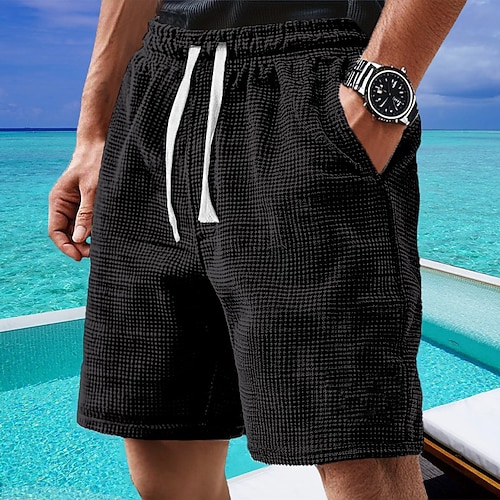 Herren Waffel-Shorts Shorts Sommershorts Freizeitshorts Kordelzug Tasche Elastischer Bund Einfach Komfort Atmungsaktiv Kurz Outdoor Urlaub Sport Lässig Schwarz Weiß Mikroelastisch