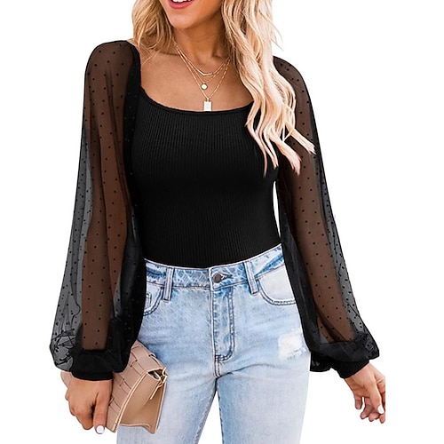 Per donna Blusa Top Eleganti Top in chiffon Top attillati A Pois Semplice Elegante Vintage Festa Manica Lunga Manica a Lanterna Collo quadrato Top corti Lavoro Quotidiano Ferie Arricciato Patchwork