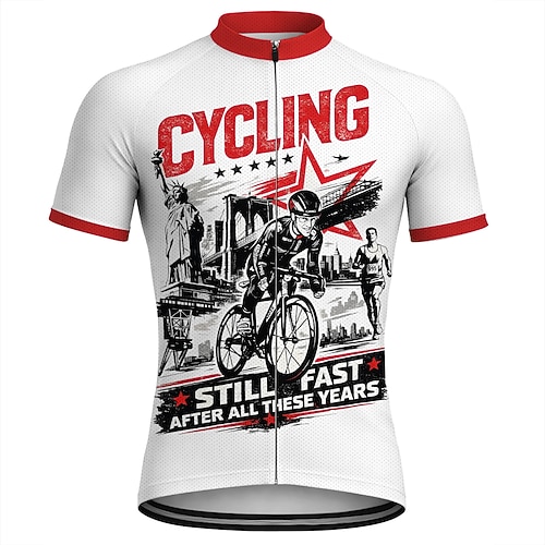 Herren Radtrikot Downhill-Trikot Fahhrad ALTER MANN AUF DEM FAHRRAD Kurzarm Fahhrad Hemd mit 3 Gesäßtaschen UV-beständig Schnelltrocknend Mit Taschen Frontreißverschluss Sport Rote Bekleidung