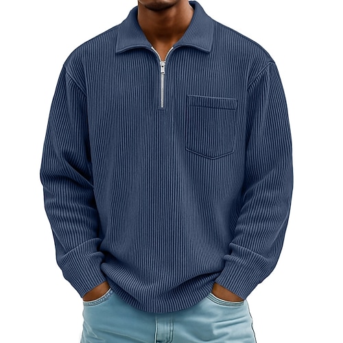 Per uomo Camicia di Velluto a Coste Testurizzato Vacanza Streetwear Zip a un quarto Manica Lunga Moda Essenziale Tinta unica Tasca Autunno Primavera Autunno Vestibilità regolare Nero Bianco Blu