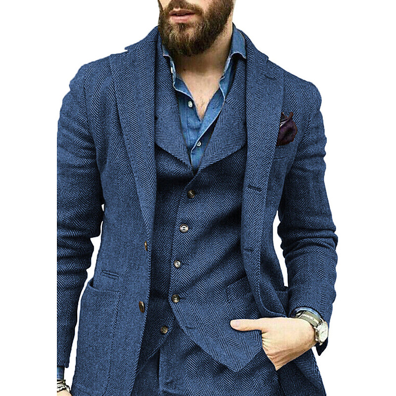 Men's BlazerVestDress Pants Blazer Vest Set Business Cocktail Party Wedding Party 3 Piece Fashion Casual Spring Fall Polyester Plain Pocket Buttons Comfortable Single Breasted Blazer Dark Gray