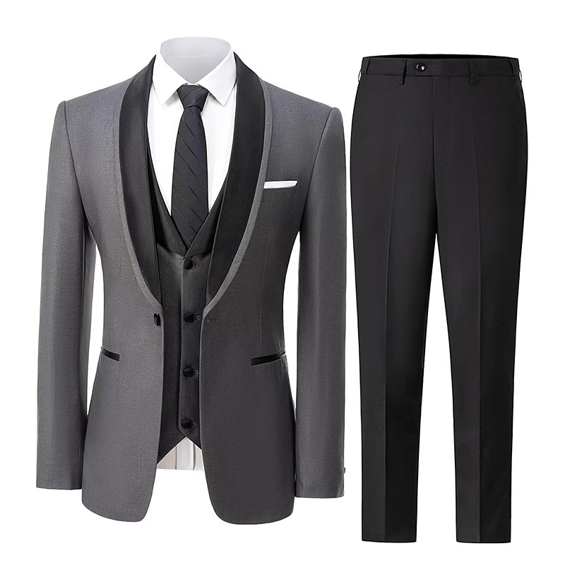 Men's Party Suits Evening Wear Tuxedos Brown Light Grey Fashion Formal Solid Colored Standard Fit 3 Piece Single Breasted One-button