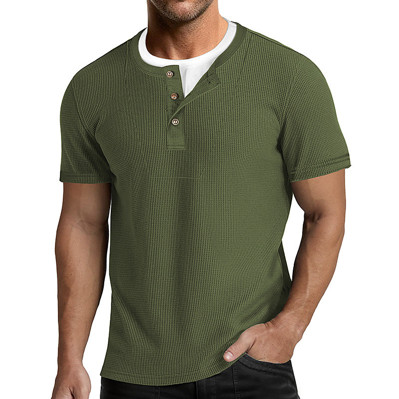 Men's Waffle Henley Shirt Tee Cotton Blend T-Shirt Short Sleeve Color Block Plain Fashion Designer Casual Color Block Buttons Fake two piece Crew Neck Henley Casual Daily Outdoor Summer All Seasons