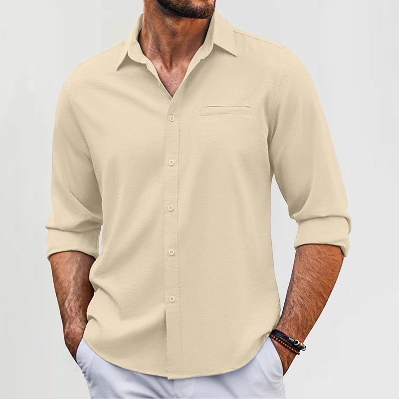Men's Cotton Linen Shirt Plain Vacation Black White Green Apricot Long Sleeve Lapel Clothing Apparel Front Pocket