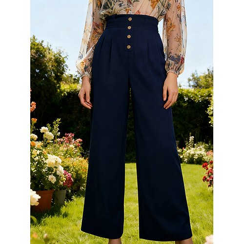 Per donna Gamba larga Pantaloni Pantaloni casual Moda Streetwear Essenziale Lunghezza intera Vita Alta Semplice Elastico in vita Comodità Confortevole Inelastico Quotidiano Vacanza Streetwear Nero