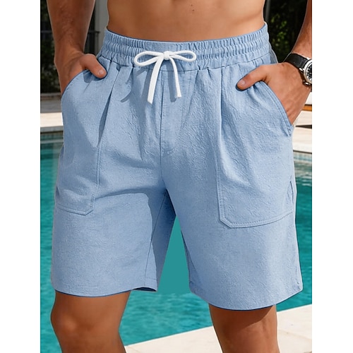 Per uomo Pantaloncini in cotone e lino Tasca Coulisse Elastico in vita Semplice Comodità Traspirante Corto Vacanza Nero Bianco