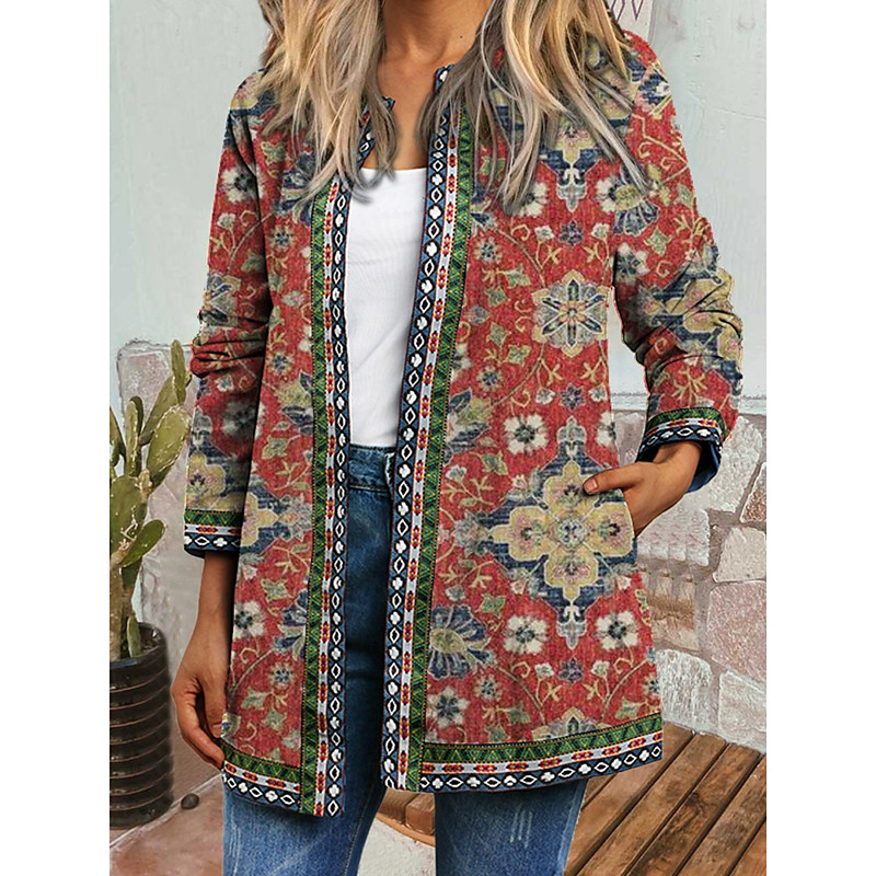 Women's Winter Coat Winter Jacket Warm Quick Dry Buttons Daily Modern Casual Comfortable Floral Vacation Casual Athleisure Daily Short Collarless Regular Fit Long Sleeve Outerwear Black Pink Blue