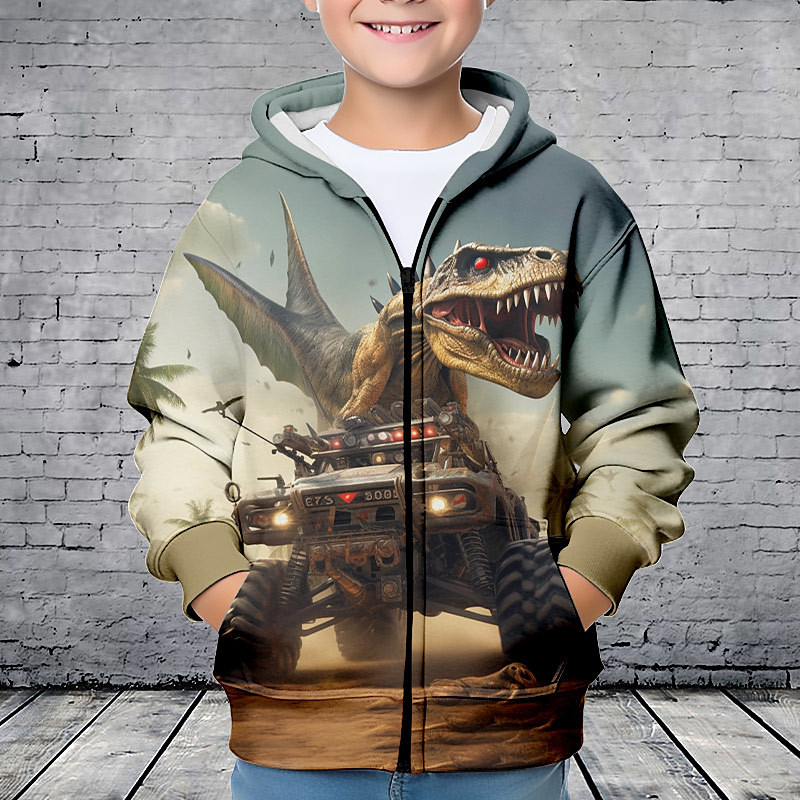 Boys 3D Dinosaur Hoodie Coat Outerwear Long Sleeve 3D Print Fall Winter Fashion Streetwear Cool Kids 3-12 Years Outdoor Casual Daily Regular Fit
