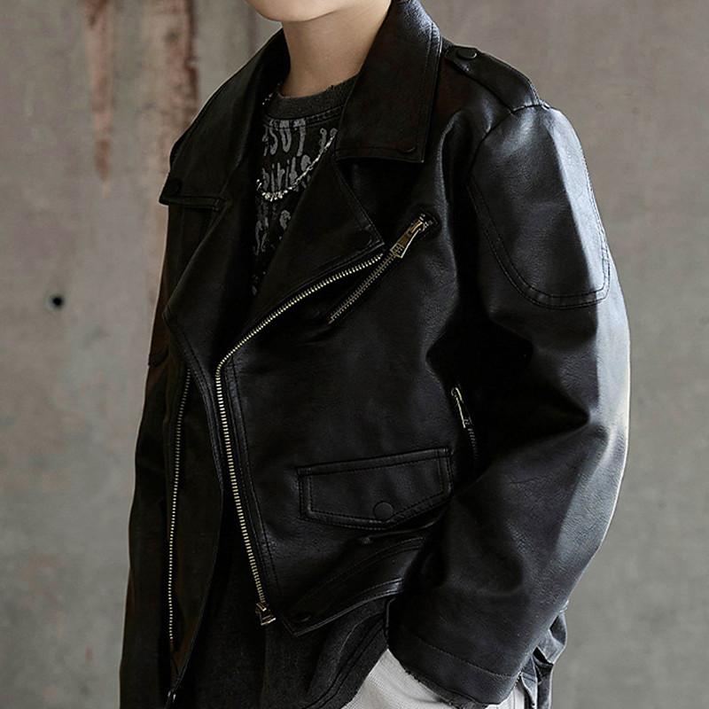 Kid's Boys' Black Leather Jacket Jacket Outerwear Plain Long Sleeve Zip Up Waterproof Windproof Coat Daily Fashion Casual Black Brown Spring Fall 4-12 Years
