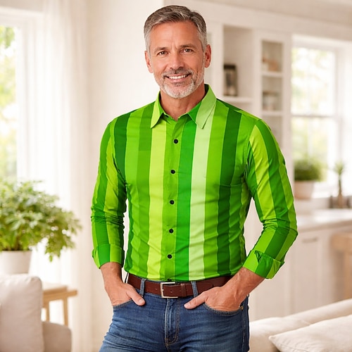 St. Patrick 2026 Retro Vintage 1970er Hemd Aloha-Hemd langarm Hippie Kostüm Herren Maskerade 4. Juli Party Festival Erwachsene Hemd