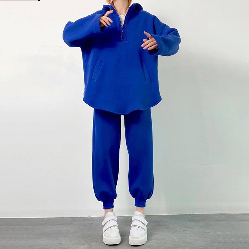 Women's Tracksuit Sweatpants Pullover Sweatshirt Pocket Hooded Solid Colored Clothing Suit Spring Black Blue Gym Training Running High Waist Windproof Lightweight Moisture Wicking Long Sleeve Sport