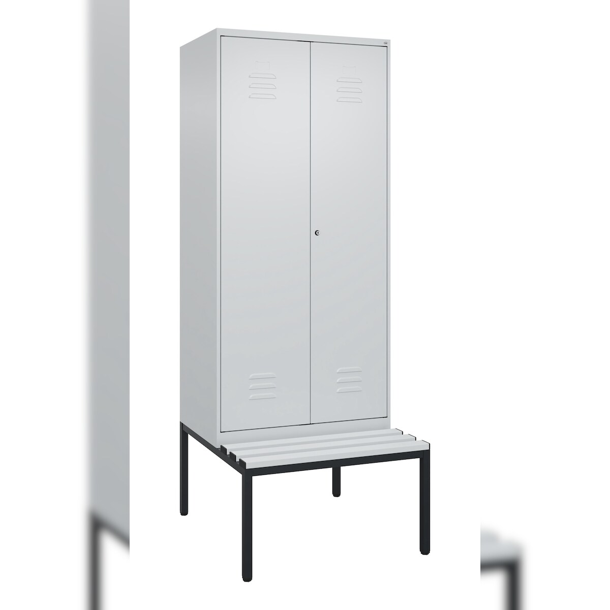 C+P Doppel-Spind Classic PLUS Kunststoff untergebaute Bank, 2 Abteile, Trennwand, HxBxT 212x80x82cm, Zylinderschloss, Hellgrau/Hellgrau von PROREGAL