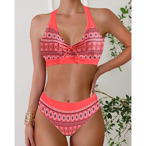 Tankini 2 pezzi costume da bagno da donna boho che rende le chiappe in vista schiena scoperta abbigliamento da spiaggia per le vacanze paisley collo alla halter costumi da bagno senza maniche