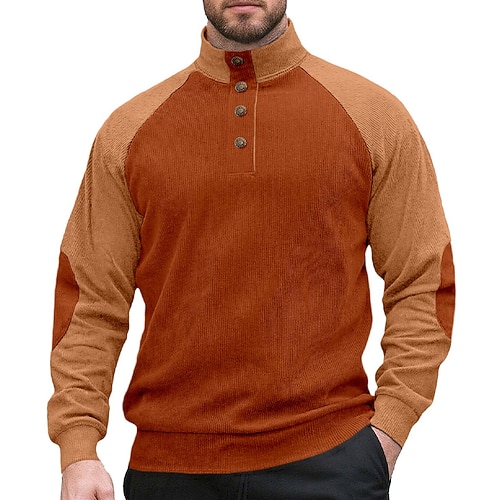 Per uomo Maglia Velluto a coste Felpa con cappuccio Felpa con cappuccio abbottonata Aalbicocca Vino Verde militare Blu marino Marrone Colletto Mao Semplice Patchwork Sport Outdoor Casuale Quotidiano