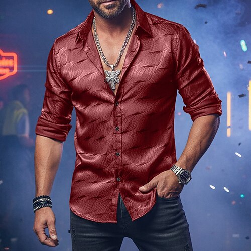 Per uomo Camicia Camicia casual Camicia con Bottoni Camicia da Ballo Nero Vino Viola Oro Manica Lunga Semplice Testurizzato Bavero Feste Quotidiano Jacquard Abbigliamento Moda Elegante casual