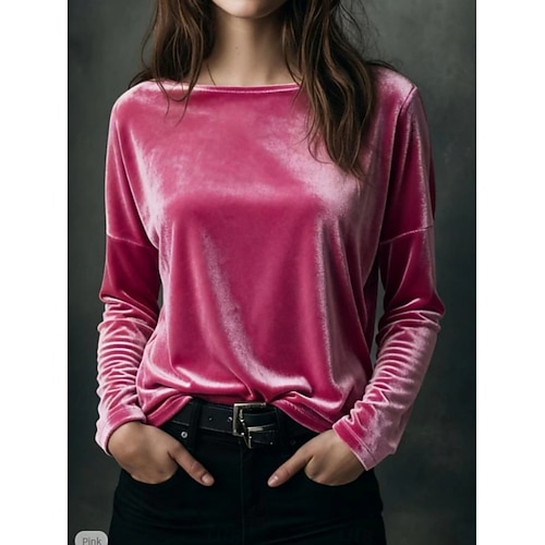 Per donna Blusa Tinta unica Vintage Casual Manica Lunga Girocollo Top Regolari Quotidiano Arricciato Blu Verde salvia Rosa Vino Marrone Primavera Autunno Inverno