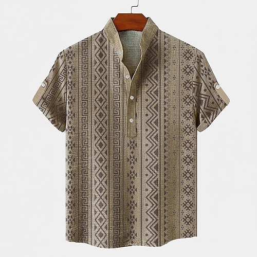 Per uomo Geometrico Chiave greca Meandro Camicia Camicia button-down Manica Corta Vintage Retrò Ferie Casual Quotidiano Estate Primavera Colletto Mao Colletto Henley Stampa 3D Camicia tipo lino Cáqui