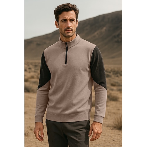 Per uomo Felpa Manica Lunga Collo Alto Primavera Autunno Inverno Quotidiano Con zip Patchwork All'aperto Vacanza Casa Nero Marrone Kaki Maglietta Top per Uomo
