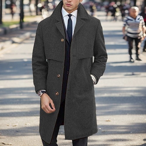 Per uomo Cappotto invernale Peacoat Trench Trench lungo Esterno Da tutti i giorni Autunno inverno Poliestere Tenere al caldo Antivento Capispalla Abbigliamento Di tendenza Streetwear Liscio Tasche