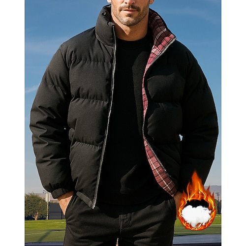 Per uomo Cappotto invernale Giacca invernale Piumino Cerniera Tasche Poliestere Tasche Esterno Appuntamento Casual / quotidiano Standard Di tendenza Informale Tenere al caldo Antivento Inverno Liscio