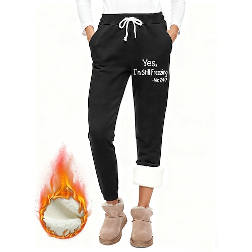 Per donna Pantaloni da tuta Pantaloni in Pile Pantaloni Eleganti Vacanza Moda Essenziale Lunghezza intera Vita Alta Lettera Coulisse Tasca Stampato Calore Termico Antivento Comodo Elasticizzato