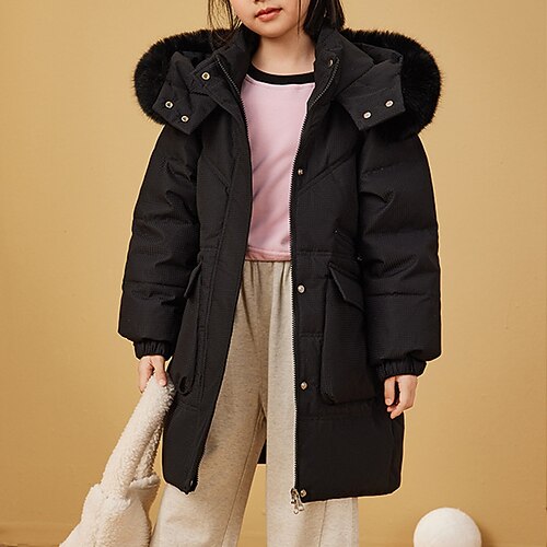 Bambini Ragazze Giacca in piuma Giacca Imbottita Lettera Sport Tasca Tenere al caldo Antivento All'aperto Cappotto Capispalla 4-12 Anni Inverno Nero Vino Verde militare