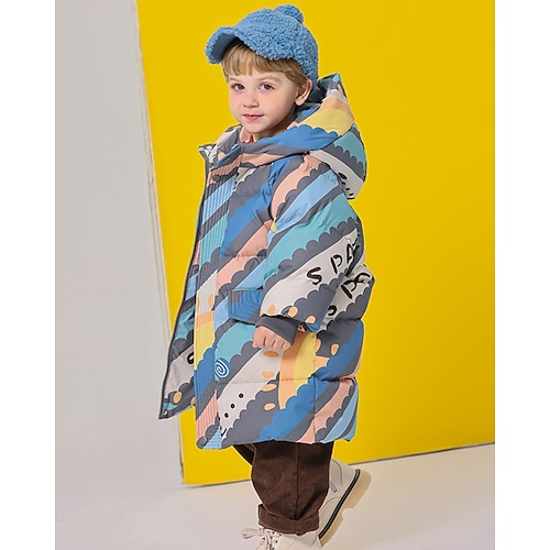 Bambini Ragazzi Giacca in piuma Giacca con Cappuccio Giacca Imbottita Capispalla Grafico Manica Lunga Tenere al caldo Antivento Cappotto Casuale Quotidiano Essenziale Blu Bianco Blu marino Autunno