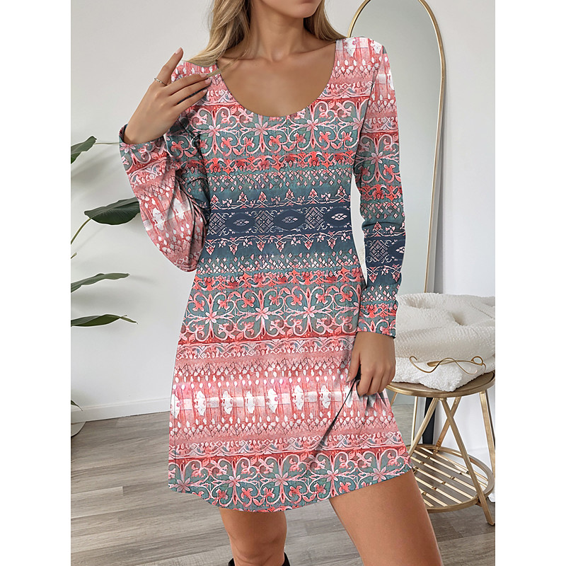 Women's Mini Dress Crew Neck Long Sleeve T Shirt Dress Tee Dress A Line Dress Casual Daily Regular Fit Graphic Geometric Pink Blue Purple Fall Winter