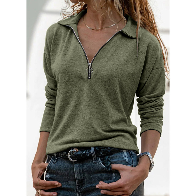 Women's Tunic Solid Color Elegant Vintage Stylish Long Sleeve Crew Neck Regular Tops Daily Quarter Zip Black Red Blue Green Khaki Spring Fall